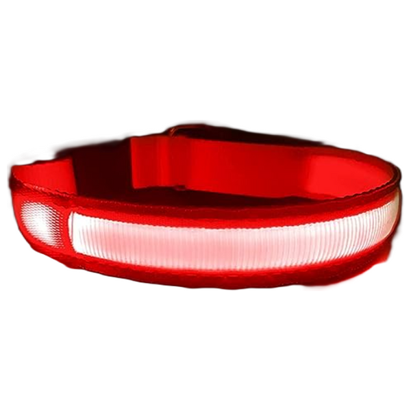 Lightweight, adjustable collar with durable nylon strap and secure closure. Features a bright LED strip for enhanced nighttime visibility. USB rechargeable.