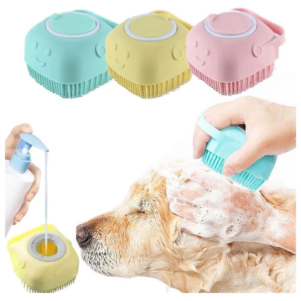 Make it easy to brush and pamper your dog during bath time with this shampoo dispenser with massage brush. The silicone bristles dispense shampoo and gently massage to help remove dirt and improve the coat's shine.