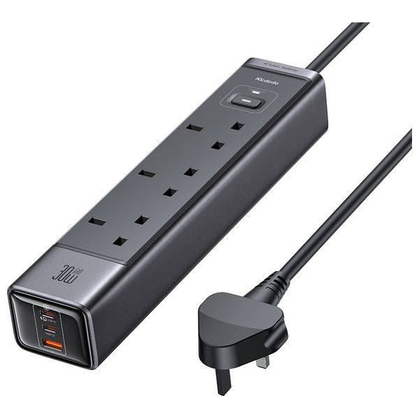 Power strip with 6 outputs including 2 USB-C ports,1 USB-A port,and 3 AC outlets