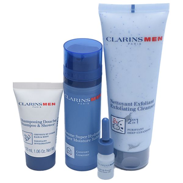 The preparation, exfoliating and moisturizing range specially designed for men's skin, includes ultra moisturizing conditioner 50 ml, exfoliating cleanser 125 ml, shampoo and body wash 30 ml, shaving oil 3 ml, with bag.