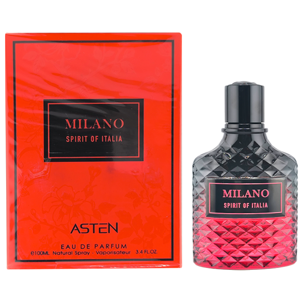 Milano Spirit of Italia by Asten for Men is an Eau de Parfum that delivers a balanced masculine scent with a fresh opening, a warm floral heart, and a rich base. The top notes blend black currant and bergamot with a hint of pink pepper. The heart reveals jasmine, sambac jasmine, and jasmine tea, creating a refined warmth. Vanilla bourbon, cashmere and guaiac wood form an enduring base, giving projection and longevity. The distinctive bottle and red packaging complement its bold character, making it suitable for everyday wear.