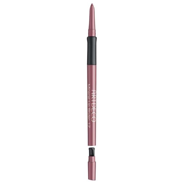 Retractable mineral lip liner with built-in sharpener, long-wearing without drying out lips, applies smoothly and leaves a velvety finish.