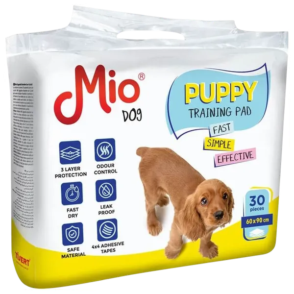 This 60x90cm dog training pad features three layers of protection, odor control, quick-drying absorption, and leak-proof durability. It also includes 4x4 adhesive strips for secure placement.