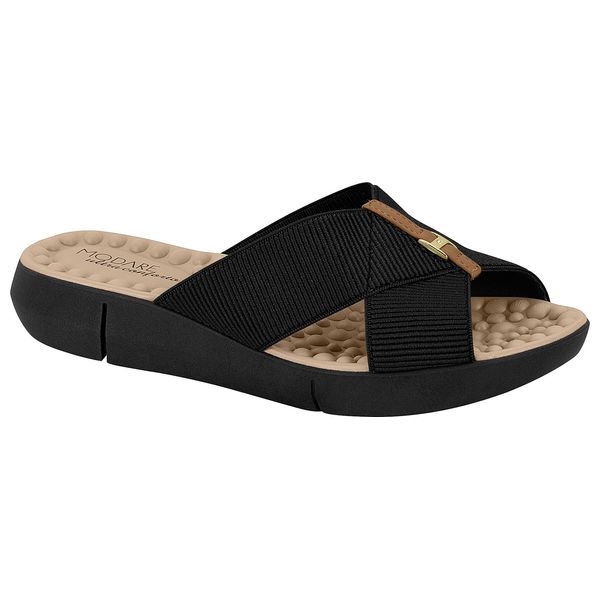 Modare Orthopedic Slipper combines everyday comfort with a stylish, practical design. Made from stretch fabric for a flexible, snug fit and featuring a 3 cm heel that provides a subtle lift without sacrificing comfort. The dual-strap cross design offers secure footing. Available in Black with Tan as another option, and sized 36–41 for a range of foot shapes. Ideal for women seeking a stylish slipper that blends Brazilian craftsmanship with daily comfort.