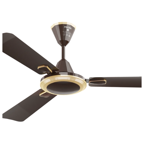 Modex CF5700 is a 56-inch brown ceiling fan with a safety metallic finish. It delivers steady airflow with 3 speeds and a regulator-controlled operation, consuming 75W. Its wide blades provide efficient cooling for living rooms and bedrooms while adding a stylish touch to your space.