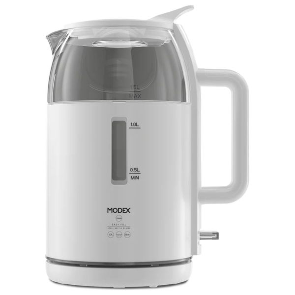 The Modex 2200W Kettle delivers fast and safe boiling with a modern, practical design. With a 1.5L capacity, the cordless 360° rotating base allows easy handling from any angle. The concealed stainless steel heating element ensures quick and efficient boiling, while the detachable lid and patented easy-fill cover make cleaning and refilling effortless.