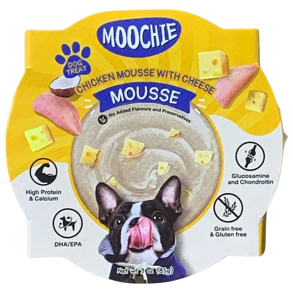 Featuring a smooth mousse texture with chicken and cheese, this product provides a high percentage of protein and calcium, plus DHA/EPA to maintain healthy skin and coat. Its formula contains glucosamine and chondroitin to support joint health, and it is grain-free, gluten-free, and contains no added flavors or preservatives.
