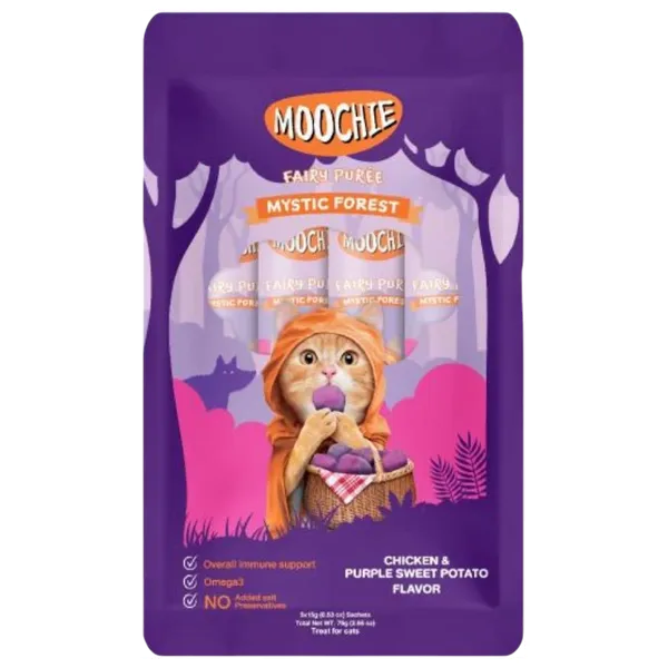 With its delicious combination of chicken and purple sweet potato, this treat is specially designed to suit cats' tastes and support their health. It contains omega-3 fatty acids to boost immunity and is free of artificial preservatives.