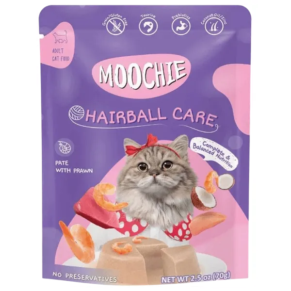 MOOCHIE Hairball Care Pate with Prawn Cat Food - 70g
