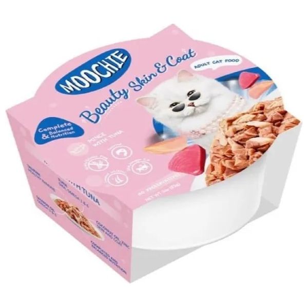Ready-to-eat cat food, featuring a blend of minced tuna to provide a smooth texture that cats prefer.