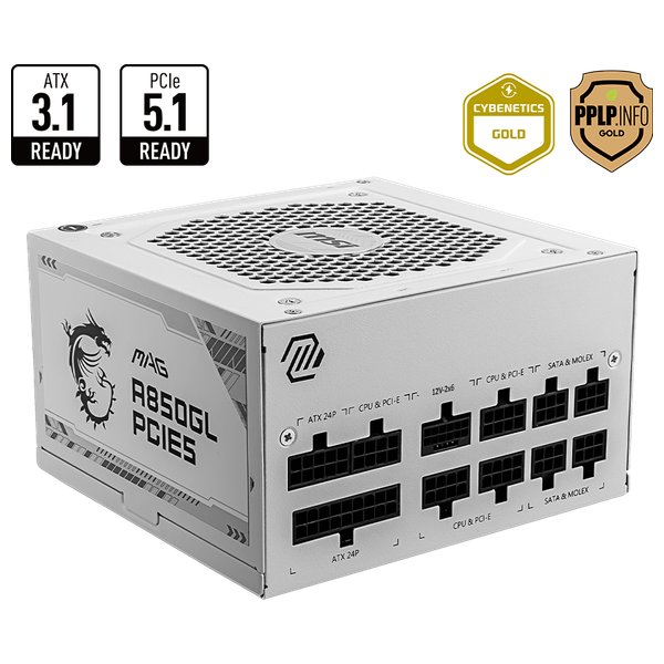Dust filter: top and bottom"Efficiency Rating: 80 PLUS Gold (up to 90%) Adjustability: Yes (Fully Modular) Fan Size: 120mm Fan Bearing Type: Fluid Dynamic Bearing Dimensions (L x W x H): 140 x 150 x 86mm PFC Type: Active PFC Input Voltage Range: 100~240VAC Output Power: 850W Power Discharge: 1700W (up to 200% of the unit's rated power for 100μs) Input Frequency Range: 47~63Hz Protection: OCP / OVP / OPP / OTP / SCP / UVP"