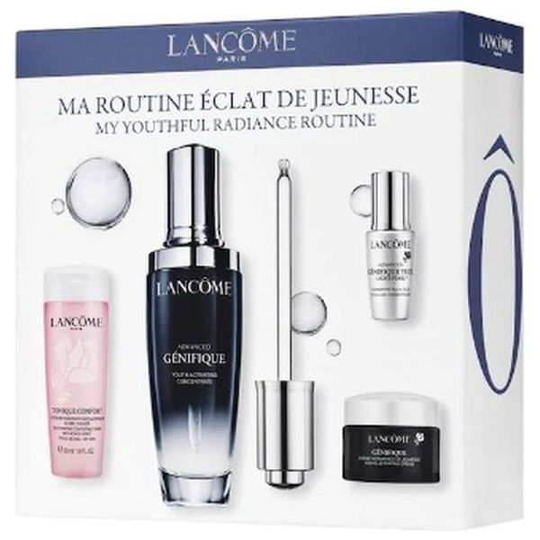 A care set to brighten and rejuvenate the skin, which is the ideal routine for brighter skin at all ages and for all skin types. The set includes the following: Génifique Advense Skin Serum, 50 ml. Comfort Toner 50 ml. Génifique Advense Light Pearl Eye Cream 5 ml. Génifique Youth Revitalizing Cream 15 ml.