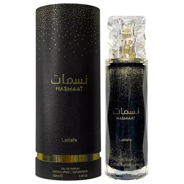 Nasmaat by Lattafa is a unisex fragrance that blends spicy, fruity, and woody facets for versatile wear. The top notes pair pink pepper with bergamot and sage, revealing a heart of plum and jasmine accented by black pepper. The base lingers with leather, amber, moss, and patchouli, delivering a balanced, long-lasting scent in a 100 ml bottle.