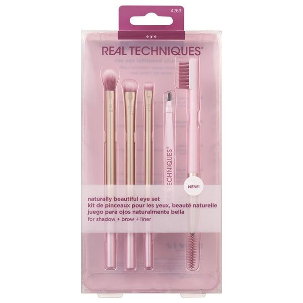Eye makeup brush set, all brushes can be used with cream and powder eye shadows, liquid or gel eyeliner, the set includes a pointed shadow brush, an eyebrow highlighter brush, a flat liner brush, an eyebrow comb, an eyebrow tweezer, and fine point tweezers.