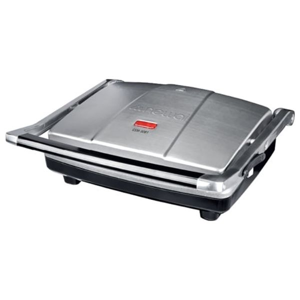 Newal GSM-5081 is an 1800-watt four-slice sandwich maker with granite-coated plates for durable, even grilling. It includes an indicator light, a stainless steel lid, and an oil collection tray for easy cleanup, making it convenient for quick family meals.