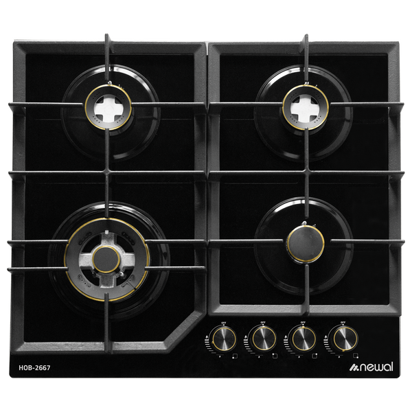 Newal HOB-2667 is a 4-burner built-in gas hob designed for efficient cooking. It features flame-out safety that instantly cuts gas, a cold plate bottom to minimize heat transfer, sturdy cast iron pan supports, heat-resistant knobs, and a battery ignition system for easy startup. Ideal for modern Iraqi kitchens, it combines safety with durable performance.