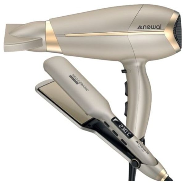 Newal HST-7267 Hair Dryer delivers powerful drying with a 2200W AC motor. It offers 2 speeds and 6 heat settings plus a cool shot for precise styling. Ceramic plates infused with argan oil help reduce frizz and add shine. A wide LED display shows settings, and auto shut-off after 60 minutes enhances safety. Includes an argan oil serum for comprehensive hair care, making it suitable for daily use and salon-like results at home.