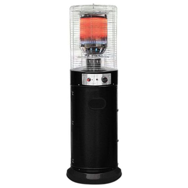 13 kW gas heater with 360° heating for even warmth. Features wheels for easy movement, a safety mesh, and a tip-over safety switch.