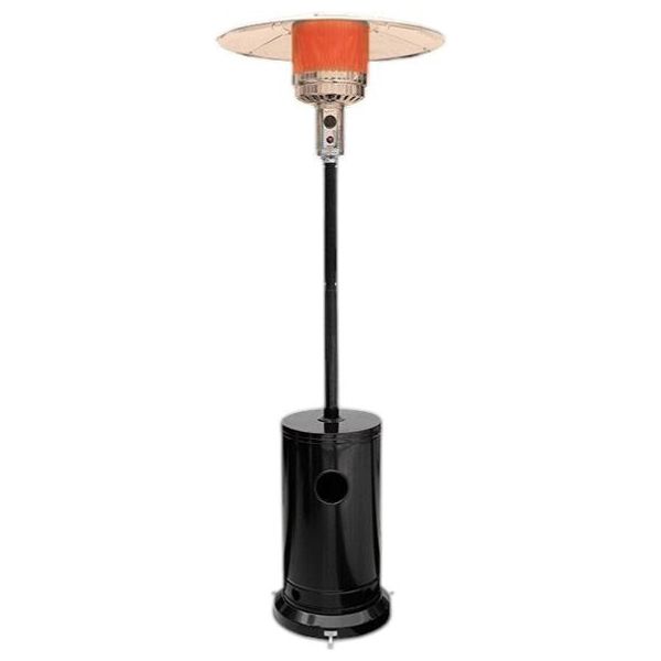 13 kW gas heater with 360° heating. Features wheels for easy movement, a double safety mesh, and a tip-over safety switch.