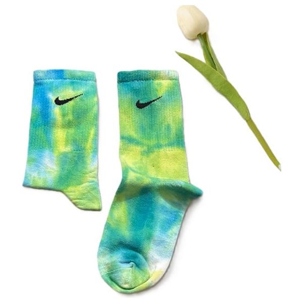 These socks are made from a soft and breathable cotton blend, with a flexible top band to keep them in place and prevent slipping, and light cushioning at the heel and toe for added comfort. They feature a unique green/blue tie-dye pattern in each pair, making them perfect for the gym, walking, and everyday wear. Easy care: Machine wash cold, no bleach, and air dry. Size: One size fits most (approximately 36–42).