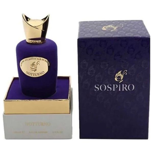 Notturno by Sospiro is a unisex Eau de Parfum (100 ml) featuring a bright opening of rum and pineapple, followed by a ink-inspired heart of leather, cloves, and birch leaves, and a warm, resinous base of incense, cedarwood, amber, and musk. The fragrance delivers a rich, velvety character with smoky elegance, suitable for evening wear and special occasions in Iraq.