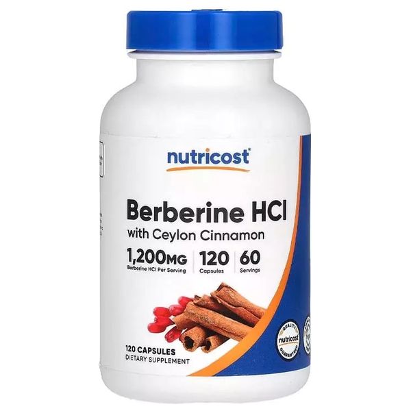 Nutricost Berberine Hydrochloride Capsules with Ceylon Cinnamon provide a balanced nutritional supplement combining berberine hydrochloride and cinnamon. Each package contains 120 capsules (60 servings) and is formulated as a non-GMO, animal-free product to support daily health.