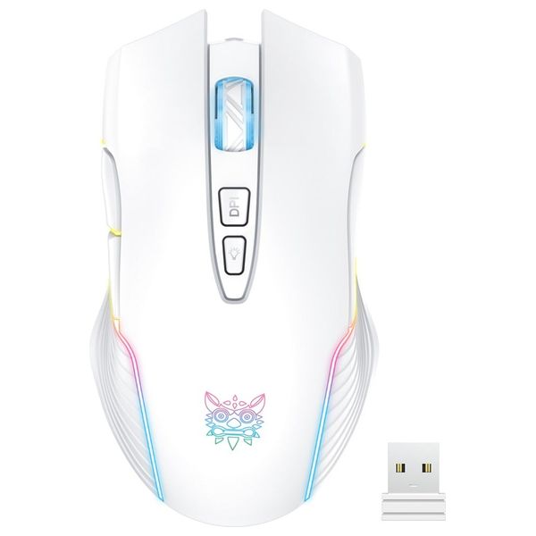 The ONIKUMA CW905 wireless gaming mouse delivers smooth performance via a 2.4GHz USB receiver, featuring a 3600 DPI optical sensor for precise and responsive control. It comes with vibrant RGB lighting, an ergonomic white design, and a rechargeable battery for extended wireless gaming sessions.