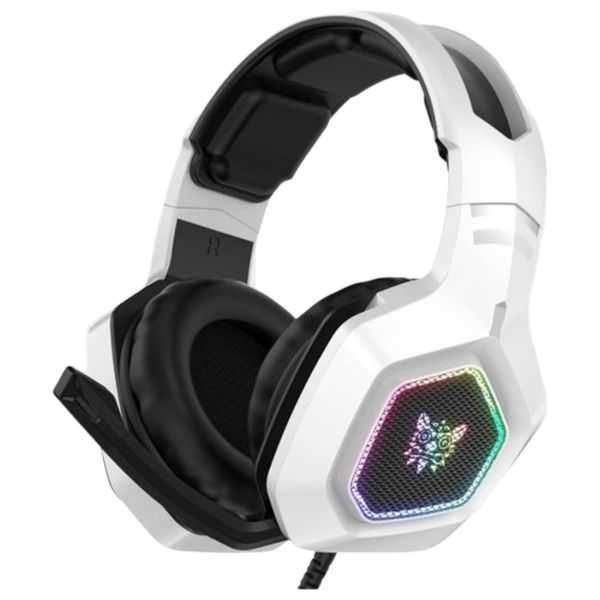 The ONIKUMA K10 White wired gaming headset features bright RGB lighting and 50mm stereo speakers for an immersive gaming experience. Protein leather padded ear cushions and an adjustable headband ensure comfort during long sessions. The built-in omnidirectional microphone with noise reduction captures clear voice for team chats and calls. In-line cable controls allow quick volume adjustment and mic mute. A 1.5m braided cable with 3.5mm jack and USB plug supports wide device compatibility, with USB powering RGB effects on the earcups for a stylish gaming look.