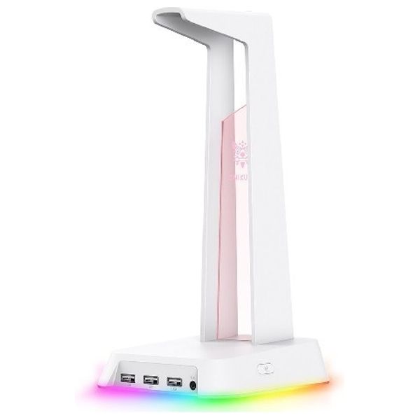 The ONIKUMA ST-2 RGB gaming headphone stand in white is a sleek and practical desk accessory designed to organize your gaming setup. It features RGB lighting with multiple modes, a stable non-slip base, and a built-in USB hub with audio support, allowing you to connect your headset and peripherals directly from the stand.