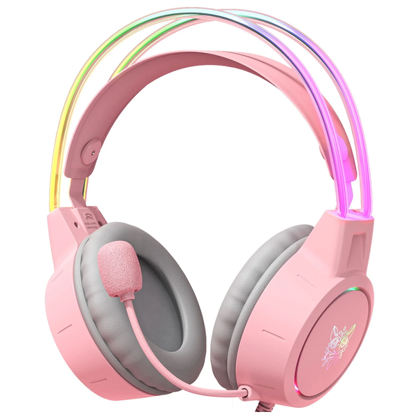 The ONIKUMA X15 Pro Pink headset combines a soft pink color with a transparent RGB headband and removable cat ears for a playful look. Equipped with 50mm graphene diaphragm speakers, it delivers virtual surround sound with deep bass, detailed mids, and clear highs across 20Hz–20kHz. The 360° omnidirectional microphone captures clear voice while reducing background noise. Features in-line controls for volume and mic mute, and USB-powered RGB lighting effects along the headband and earcups. With adjustable padded ear cushions and dual headband design, plus a 2.2m cable supporting USB & 3.5mm, it’s compatible with PC, Mac, PlayStation, Xbox, Switch, smartphones, and tablets.