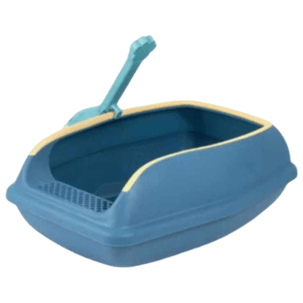 Compact plastic pet litter box, designed for easy cleaning and organized waste management, featuring an open design with a colored rim