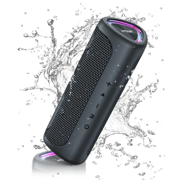 ORTIZAN M7 portable speaker, waterproof with colorful RGB lights and strong sound.