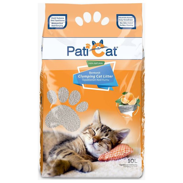 Cat litter that effectively absorbs odors and moisture, with a refreshing orange scent to keep the cat litter box clean and prevent unpleasant smells.