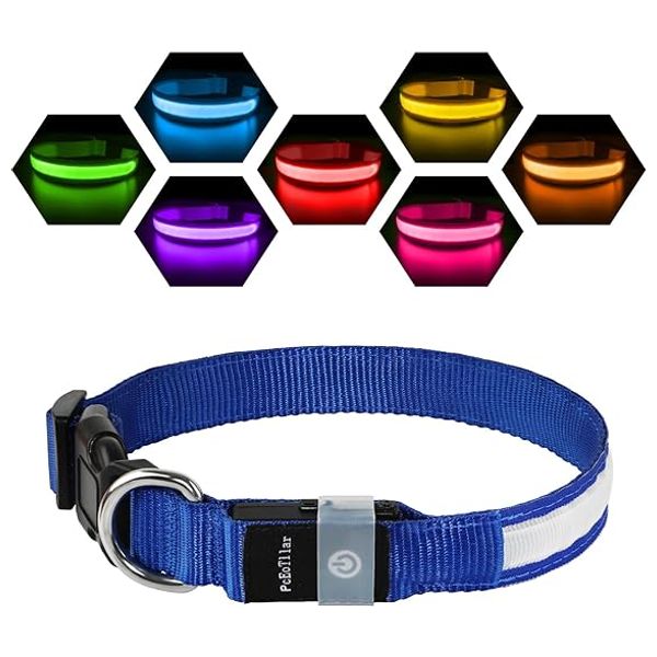 Made of durable yet lightweight nylon with a steel D-ring for attachment, features dual LED fiber optics that provide clear night vision up to 300m, comes with three lighting modes (steady, fast flash, slow flash), rechargeable via Type-C and operates up to 10 hours, waterproof and suitable for all weather conditions