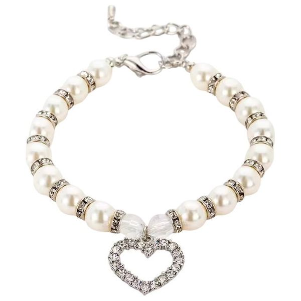 Elegant pearl bead bracelet with crystal spacers and a heart-shaped pendant, featuring a lobster clasp and adjustable extension chain for perfect comfort.