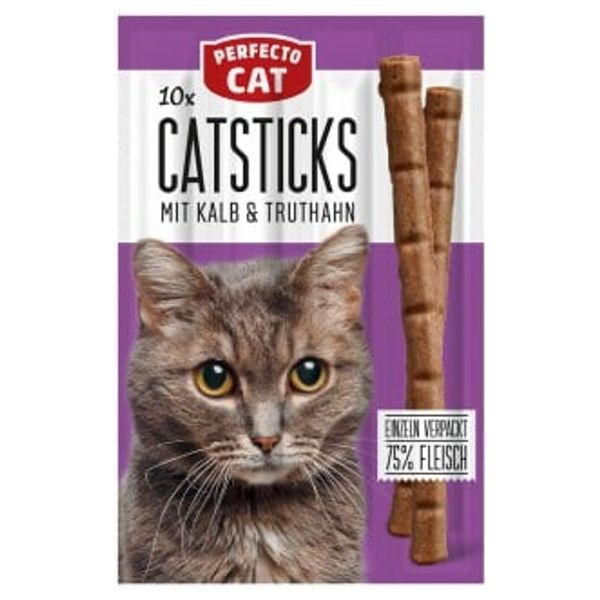 Perfecto Veal & Turkey Cat Sticks provide delicious, high-quality snacks made with 75% real meat, specially designed to satisfy cats' natural appetites. Easy to serve and ideal for rewards or training.