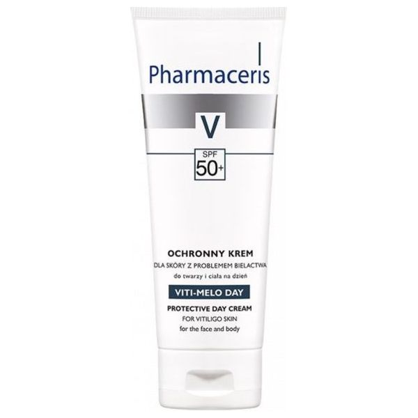 Protective cream for skin with vitiligo problem for face and body Pharmaceris V Viti-Melo Day is a product that is intended for daily use to protect the skin from sunburn. The cream also helps to limit the expansion of areas affected by discoloration. The cosmetic is dedicated to adults, but also children over five years of age.