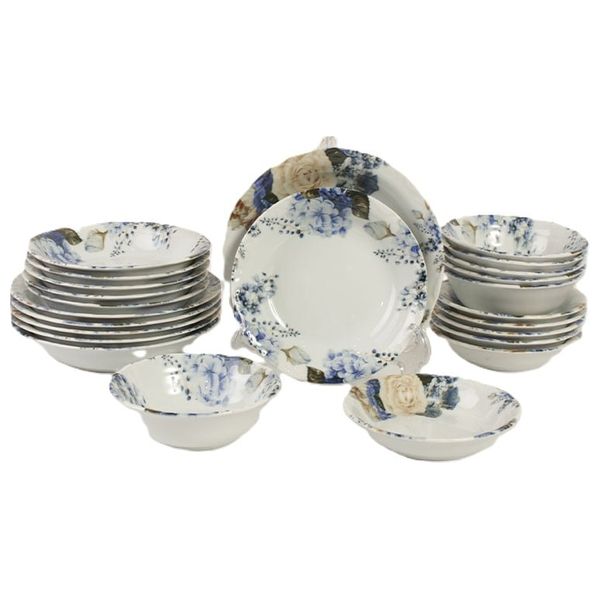 This 24-piece dinnerware set serves 6 people, offering a variety of dining options. Suitable for everyday use, entertaining, and creating elegant table settings.
