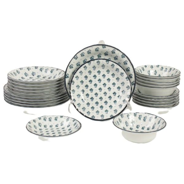This 24-piece dinnerware set serves 6 people. Perfect for everyday meals or special occasions, this versatile set adds color and style to your table and is ideal for family meals.