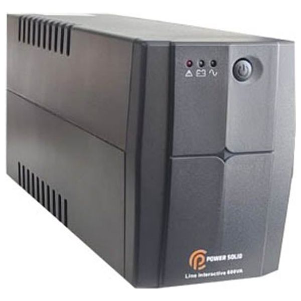 A Line-Interactive UPS by Power Solid with 600VA/360W capacity, featuring AVR voltage regulation to protect your devices from power cuts and fluctuations. Provides instant battery backup to safely shut down devices during outages.