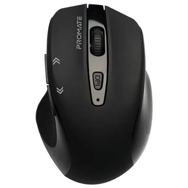 Promate Cursor Black is a compact wireless mouse designed for comfortable daily use. It offers a 7–10 m wireless range, adjustable DPI settings of 800/1200/1600, and a 2.4 GHz connection for reliable, lag-free operation. Powered by a single AA battery, it provides simple plug‑and‑play compatibility with laptops and desktops, making it suitable for work and home computing