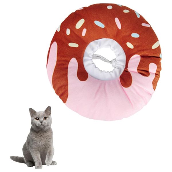 Soft, cotton-filled collar prevents licking or biting of wounds after injuries or surgery. Comfortable design allows for normal eating, drinking, and sleeping. Adjustable size to fit cats and small dogs.