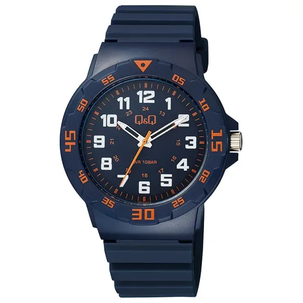 Men's watch with a 43mm diameter and 10.5mm thickness case, blue resin case and strap, blue dial, acrylic glass, water resistance up to 10 bar, weight 37g, Cal.2035 quartz movement.
