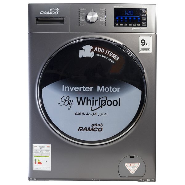 غسالة أوتوماتيك 9kg من Ramco. محرك انفيرتر من Whirlpool. ميزة إزالة البقع العنيدة. نظام ضد الاهتزاز. لوحة تحكم لمس. ميزة إعادة التشغيل التلقائي في حال انقطاع التيار الكهربائي. إمكانية إضافة الملابس أثناء دورة الغسيل. برنامج تنظيف الحوض الذاتي. سعة 9 كيلوغرام. الجهد والتردد 220-240فولت ~ / 50 هيرتز. دورة التنشيف 1200. الاستطاعة الكلية 2000 واط. استطاعة السخان 1800 واط. عازلية الرطوبة IPX4 . الوزن القائم 70 كيلوغرام. أبعاد الطرد 690*650*920 ميليمتر. اللون رمادي .