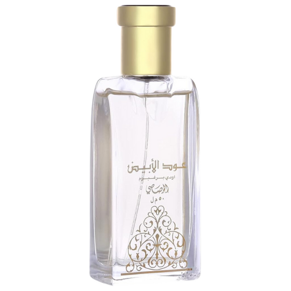 Rasasi Oud Al Abyad is a unisex Eau de Parfum that blends oriental spices with precious oud. The top notes feature saffron, cardamom, and bergamot; heart notes combine Damask rose, frankincense, and oud; base notes are white musk, amber, and sandalwood. This 50 ml bottle offers a versatile aroma for daily wear, with a warm, resinous, and woody character.