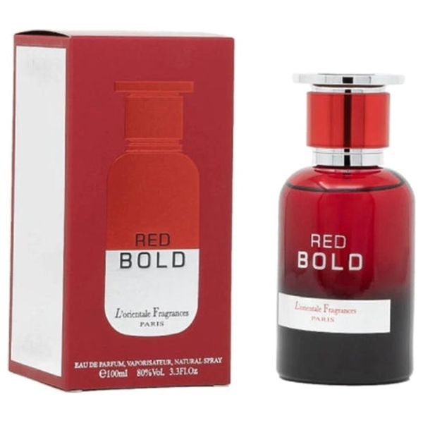 Red Bold by LOrientale Fragrances for Men is an Eau de Parfum opening with Apple, Orange Blossom, Bergamot, and Lemon. The heart blends Patchouli, Sagewood, and Rose while the base settles with Amber, Musk, and Vanilla for a warm, lasting signature.