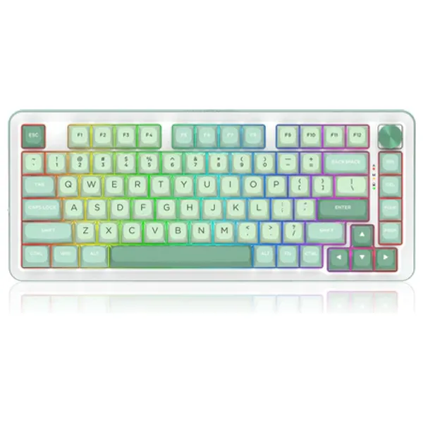 Compact 75% mechanical keyboard with cushioned design for quiet, smooth typing, hot-swappable Dragon Growl switches, customizable RGB lighting, and multi-mode connectivity.