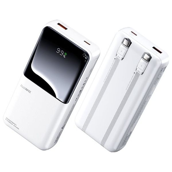 The Remax RPP-680 Cynlle Series Power Bank features a large 20,000mAh capacity with fast charging capabilities, including 20W Power Delivery and 22.5W Fast Charging. It comes with two fast charging cables: a 22.5W Type-C cable and a 20W PD iPhone cable. The device clearly displays power status on a large LED screen. Designed with simplicity and portability in mind, it uses high-quality cells for stable, overheat-free performance, making it ideal for travel and everyday use.