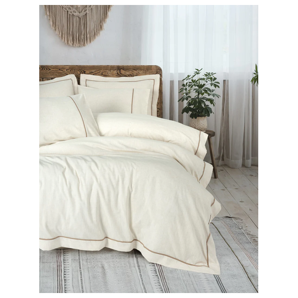 Designed with a linen and cotton blend fabric of 15% linen and 85% cotton, includes two standard pillowcases and two Oxford pillowcases, duvet cover size 200 x 220 cm; sheet size 240 x 260 cm