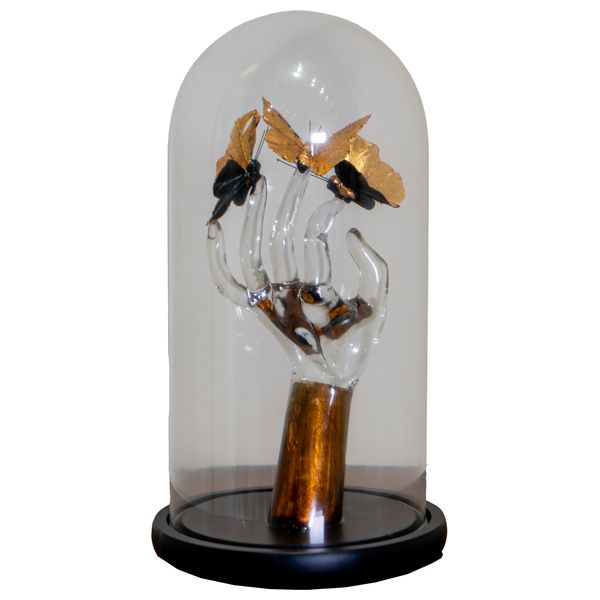 | Materials | Metal base, glass dome, glass hand with gold-finish butterflies |